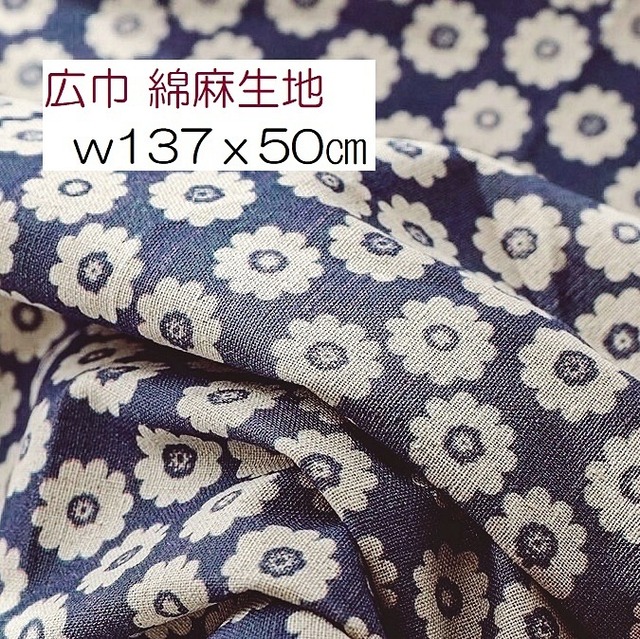 ワイド巾 花柄 綿麻生地 w137xh50㎝ デイジー 広巾 ハーフリネン 布地 ハンドメイド 生地