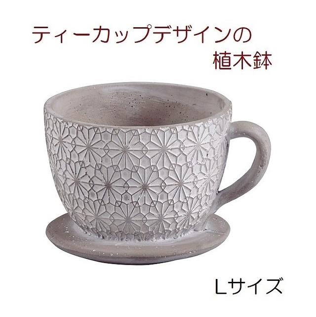 ティーカップモチーフの植木鉢 Lサイズ グレー 底穴あり ガーデニング