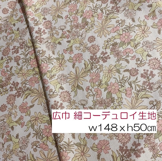 ワイド巾 花柄 コーデュロイ生地 w148xh50㎝ 広巾 細コール コール天 秋冬 布地 ハンドメイド 草花柄