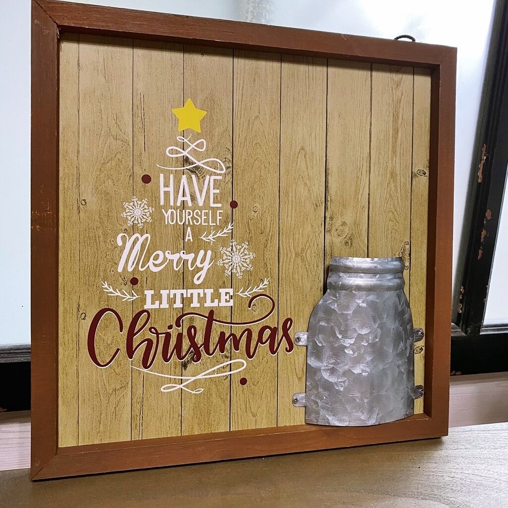 ブリキポットが固定された、クリスマスフレーム